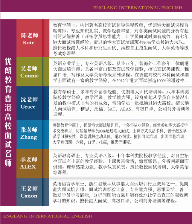 5.历届港大学子与你面对面分享他们港大面试的全过程及他们的成功经历。现在他们是港大学生大使,曾任港大学生面试官助理。