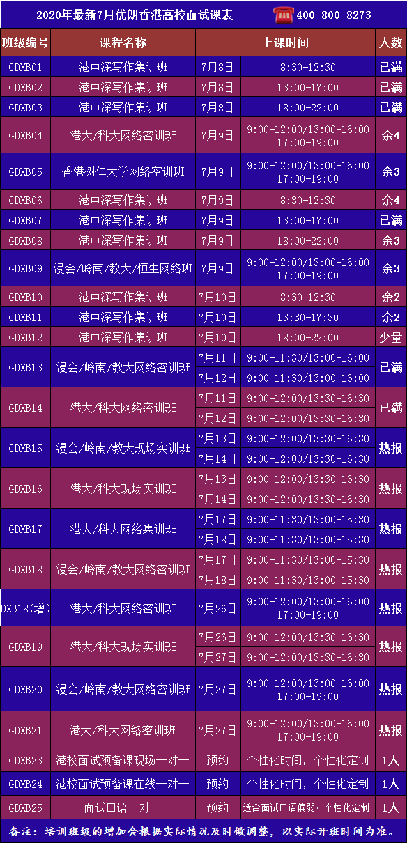 2025年6月港校面试培训课表正式发布,具体培训内容详见下文: