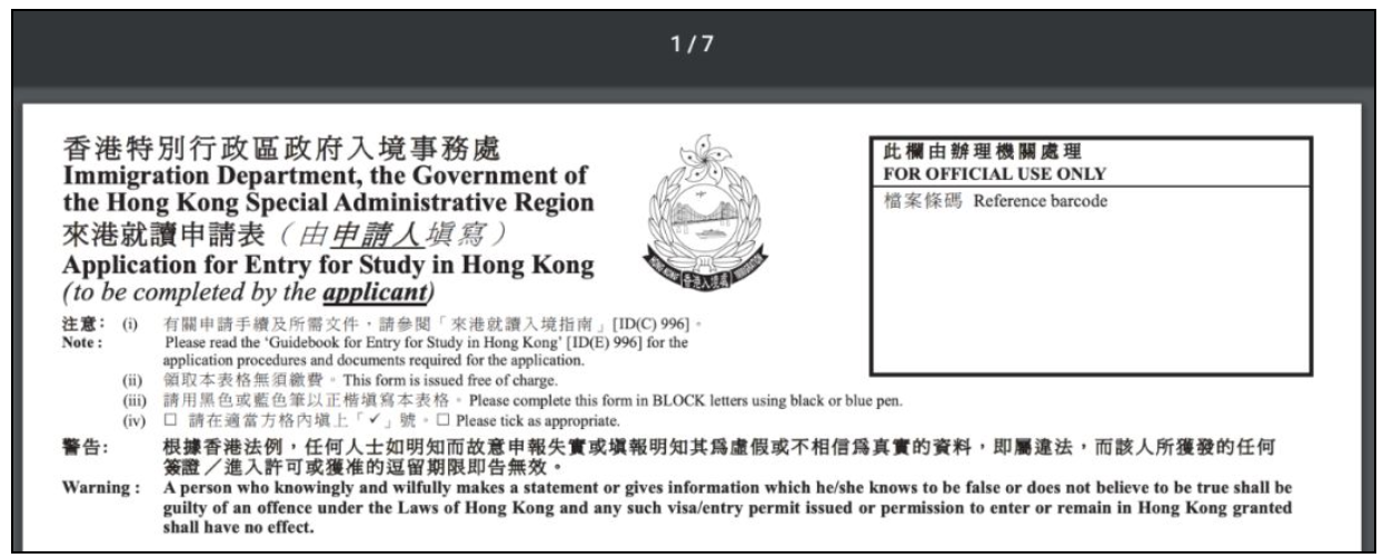 办理学生签的其中关键一步,就是填写这份长达7页的——来港就读申请表(ID995A)