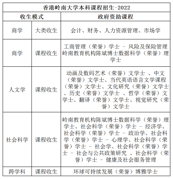 另外,岭大提供以下自资本科课程,申请途径、报名费及学费等均与政府资助课程有所不同。