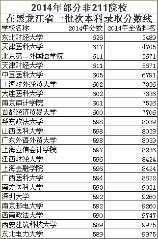 有特色的优质非211高校非常多,而且这个优质可是很过硬的,绝对不容小觑。以黑龙江省2014年高考为例,一批本科中超过600分的就有9所,一本批本科录取分数超过一本最低线的有100多所,二批本科中还有46所非211高校录取分数线超过的一本线。
