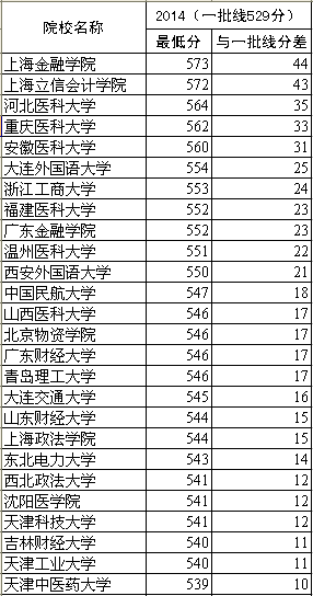 2014年部分非211院校在黑龙江省二批次本科录取中超过一本线部分院校