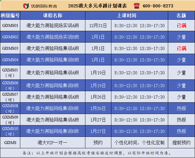 2025年6月港校面试培训课表正式发布,具体培训内容详见下文: