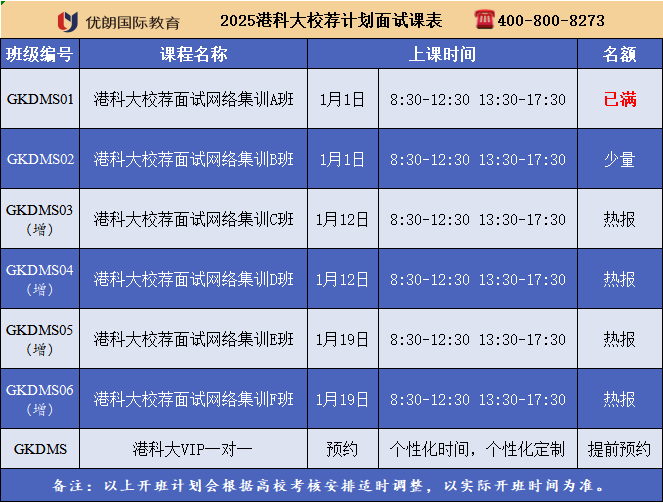 2025/2026香港高校面试培训课表