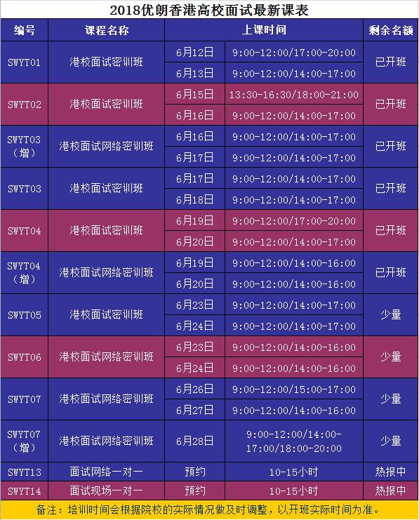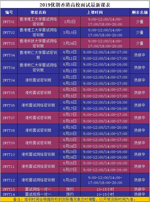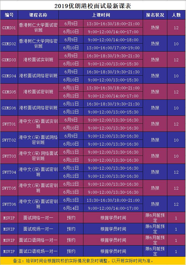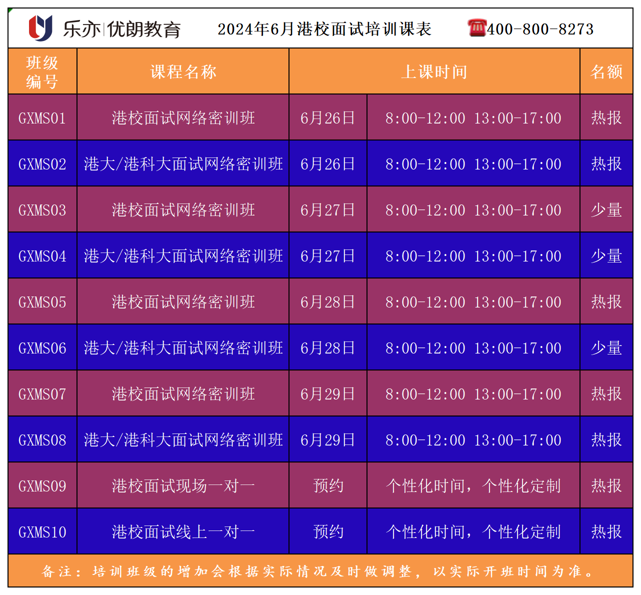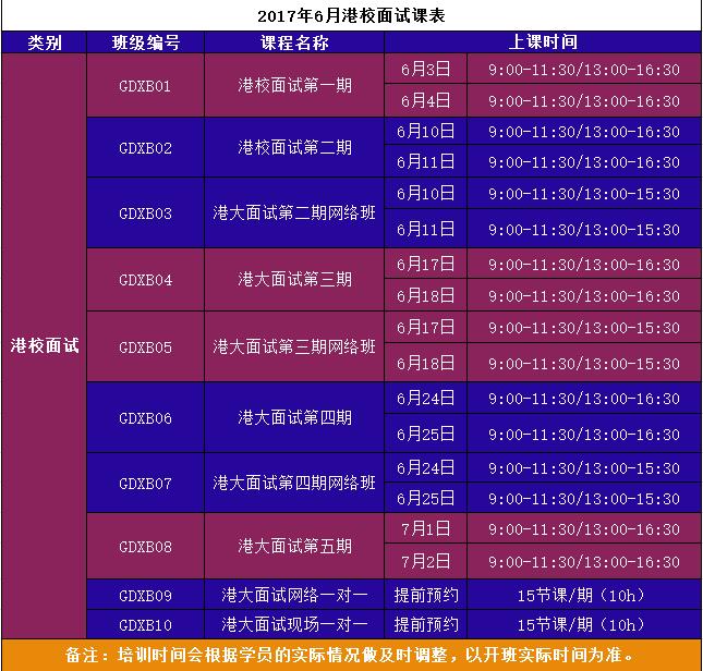 2025年6月港校面试培训课表正式发布,具体培训内容详见下文:
