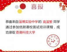 【2019喜讯】淄博实验中学的高溪繁同学录取香港科技大