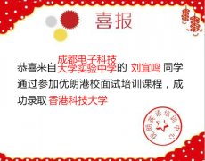 【2019喜讯】成都电子科大实验中学的刘宜鸣同学录取港