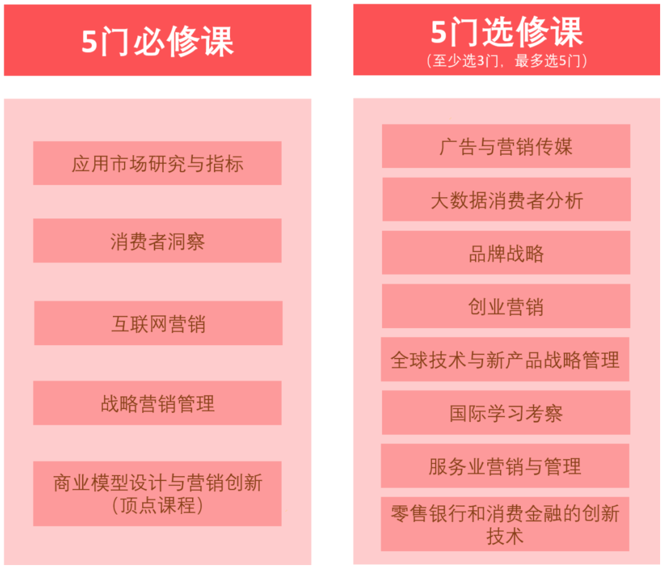 通过一年的学习,学生将能够掌握21世纪千禧一代的消费者需求,在新兴市场以及互联网市场的开发中保持领先,也能在制定营销策略时理解市场趋势,拥有准确洞察消费者的视野,并将创新和洞察力转换为管理行动来为企业发展助力。学生还有机会学习崭新的主题,例如高科技营销,互联网营销和大数据营销等。完成课程后,学生将对市场营销学拥有深入的认识,并透过分析全球顶级公司的最佳市场营销实例,巩固自己对真实市场的经验。