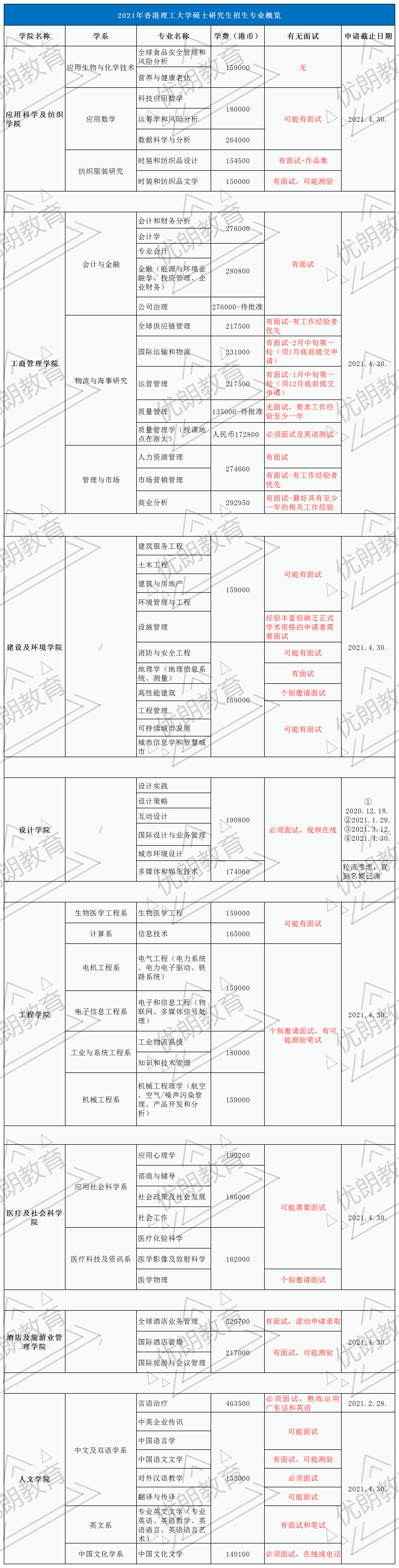 其次,上图表格数据显示,PolyU面试几乎占80%以上,且从港理工官网了解到,即使不方便到现场的内地申请者,也需要以线上或电话形式,与老师交流十几分钟。因此,香港理工大学硕士研究生面试官倾向于亲自交谈,再选拔具有培养潜力的优秀生,往年有的同学在参加PolyU面试后,老师直接表示“你可能不适合我们这个专业,不过可以推荐你参加另一个专业的面试”,可见,硕士面试老师对招生目标有明确认知,知道什么样的学生最“恰到好处”。
