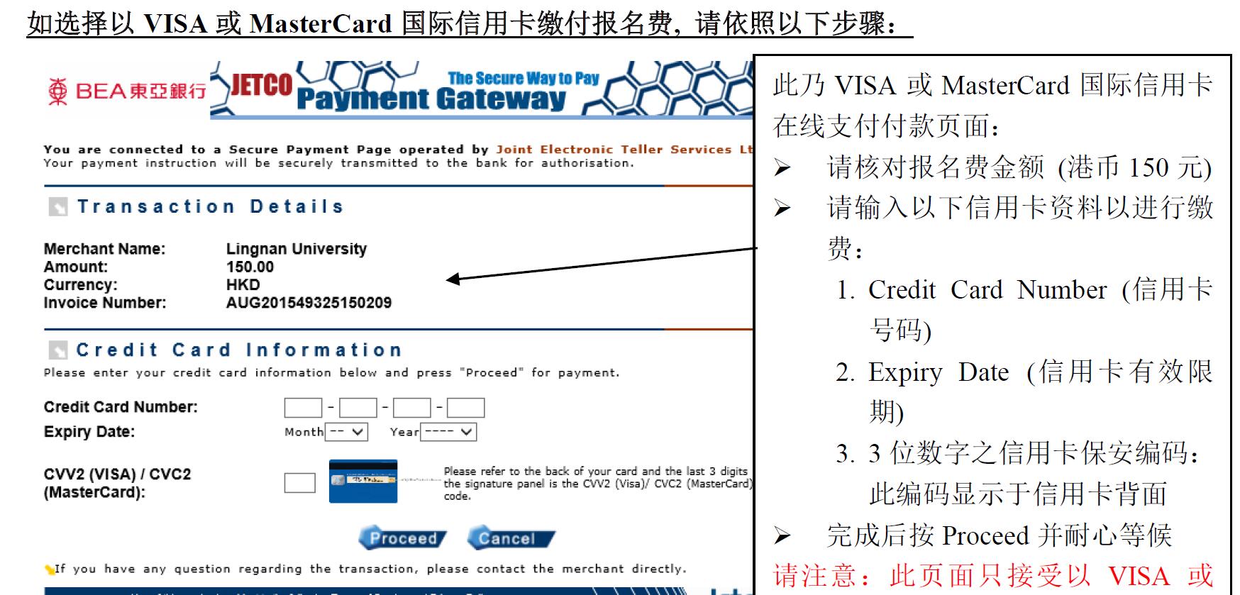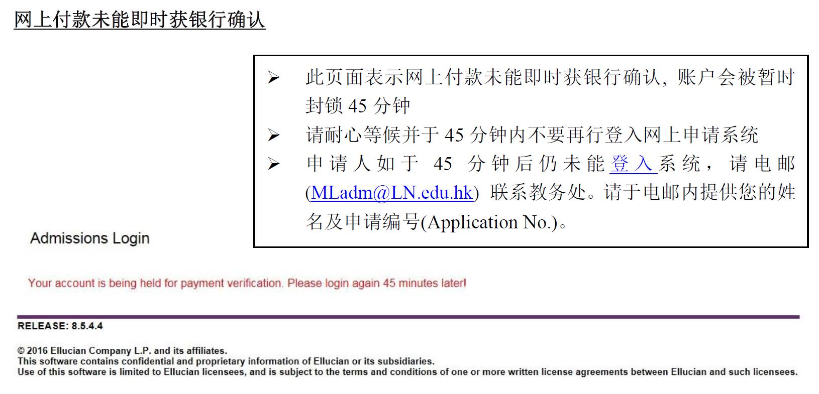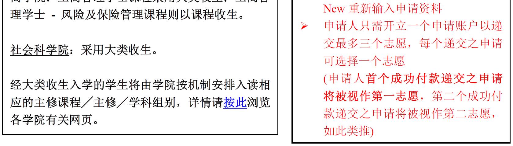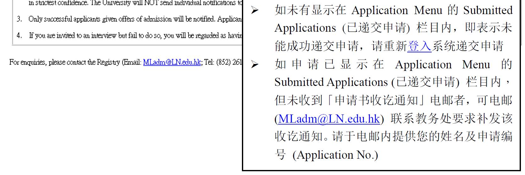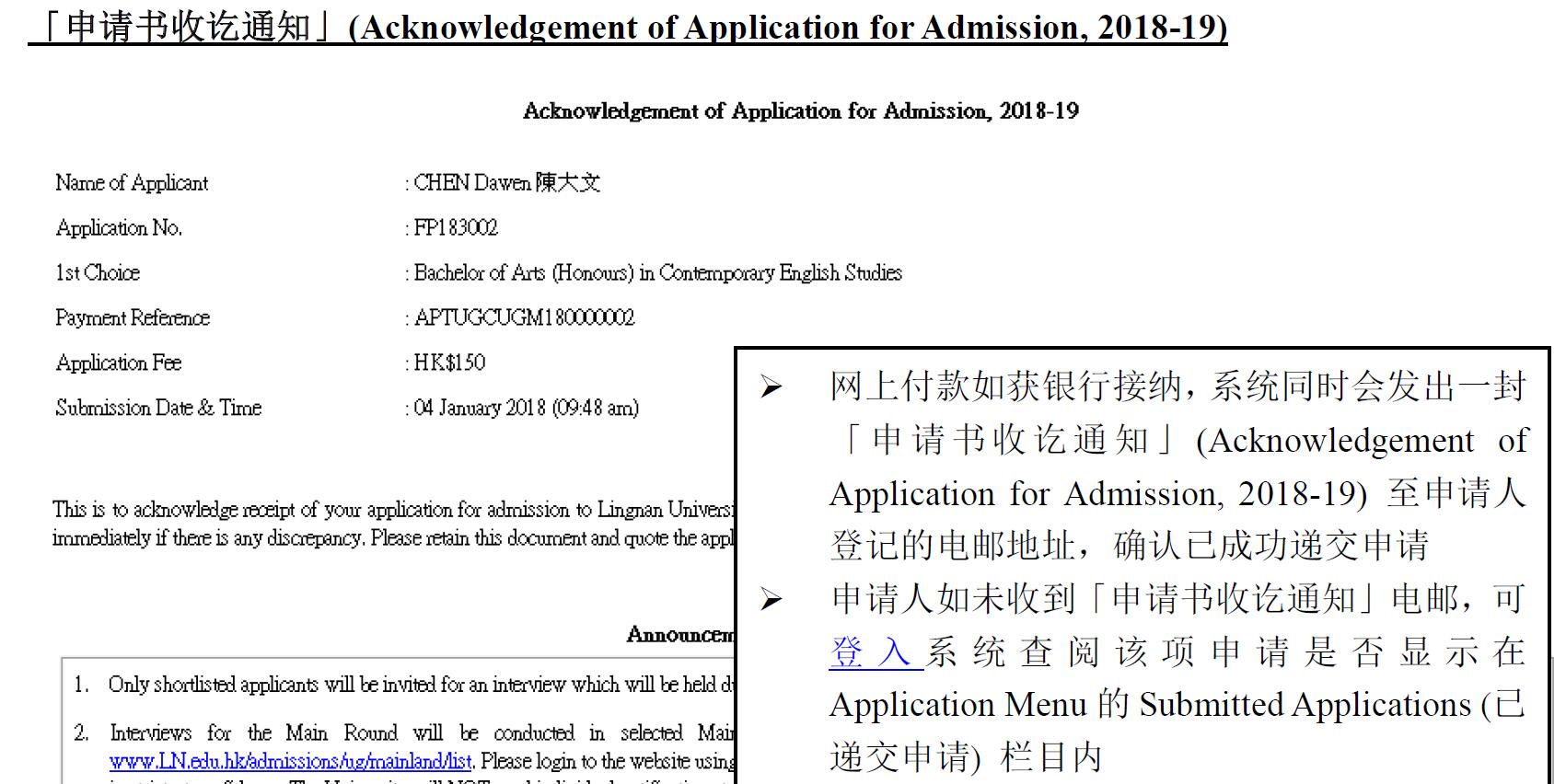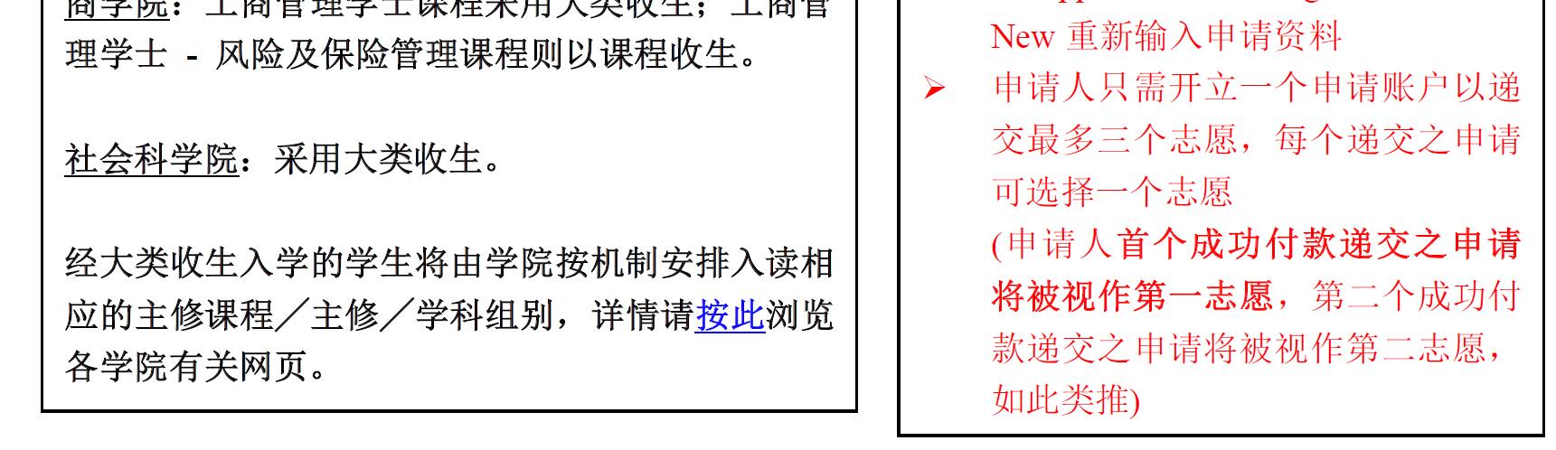 申请人只需开立一个申请账户以递交最多三个志愿,岭南大学只会处理首个已成功付款递交申请的账户内的所有申请,重复账户或申请一概不获受理,而所缴付之报名费将不予退还或转让。未免网络拥挤而错过报名,申请人应避免于临近截止报名日期一刻才提交报名。