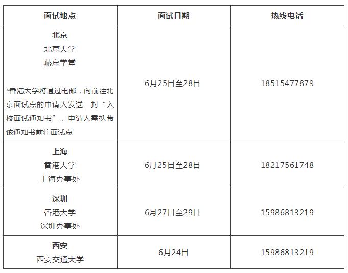 2018香港大学6月面试安排:北京、上海、深圳、西安