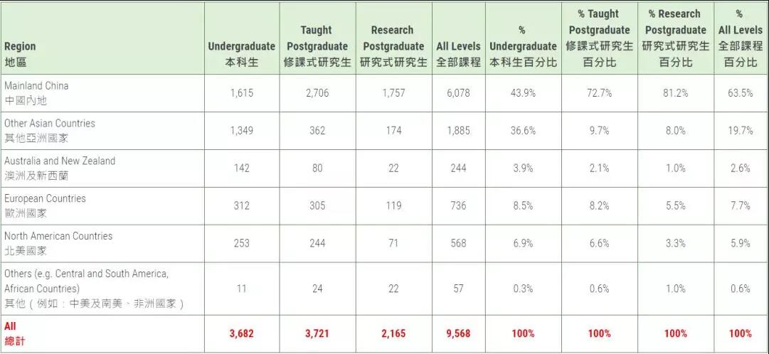 所有课程国际学生就读人数(不包括交换生)