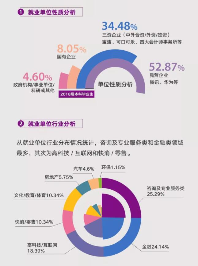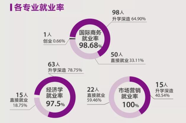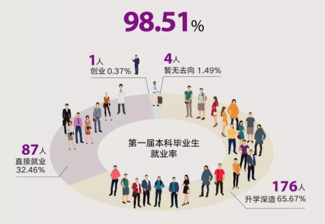 ➢ 2018届本科毕业生就业率98.51%,位于国内知名高校就业率前列。