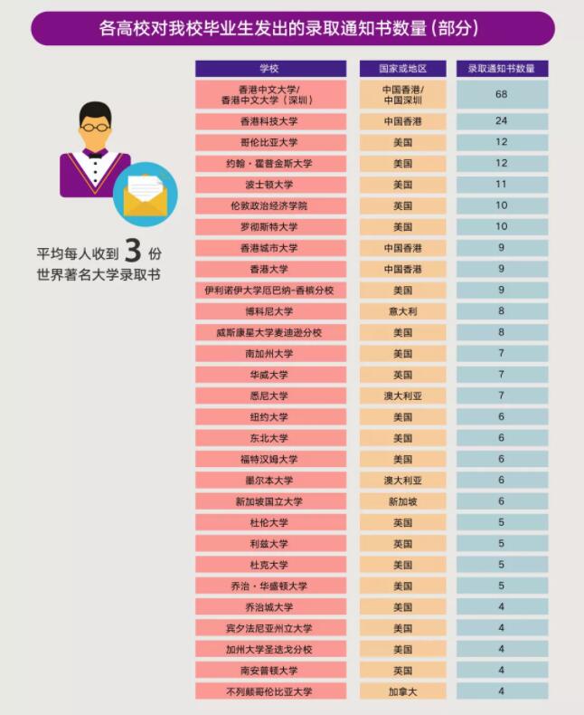 香港中文大学(深圳)2018届本科毕业生中,共有176人选择本科毕业后前往国外(境外)继续攻读研究生学位,占比65.67%,6名毕业生直接攻读博士项目。