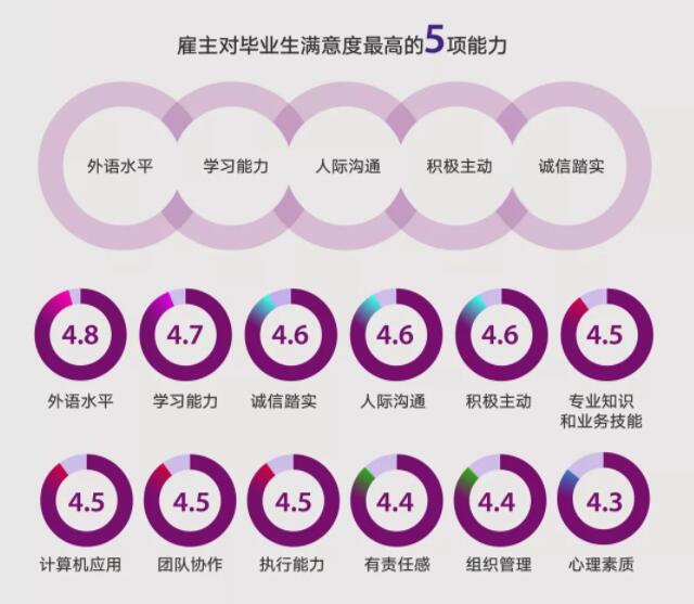 结果显示,雇主对毕业生的总体满意度较高,尤其是对香港中文大学(深圳)的学生卓越的外语水平和学习能力,优秀的人际沟通、积极主动和诚信踏实等能力或品质给予了极高的评价。