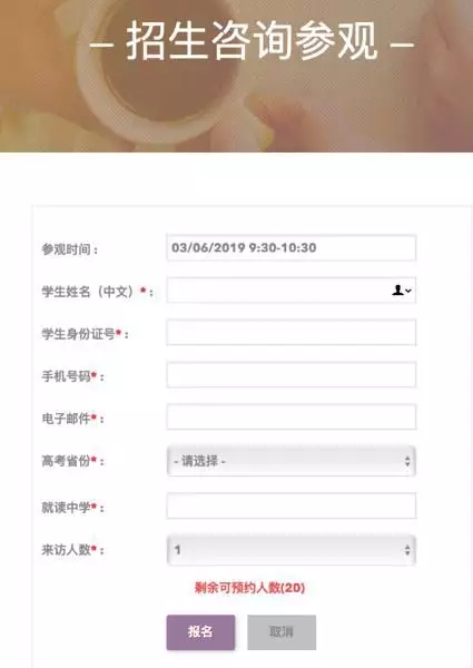 第三步:选择可预约时间段进行预约,填写访客基本信息后,点击【报名】