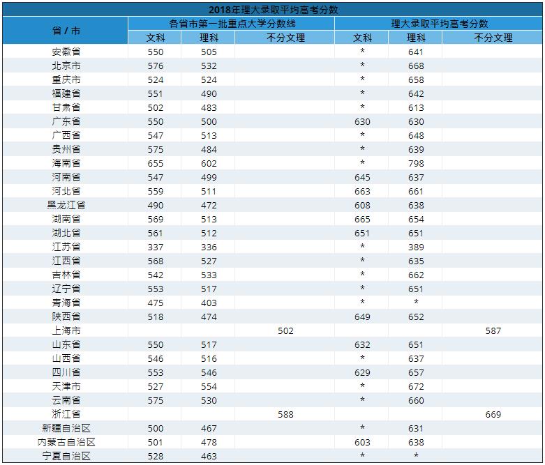 * 理大在这些省份没有录取或只录取了一名申请人,故录取平均高考分数并不适用。