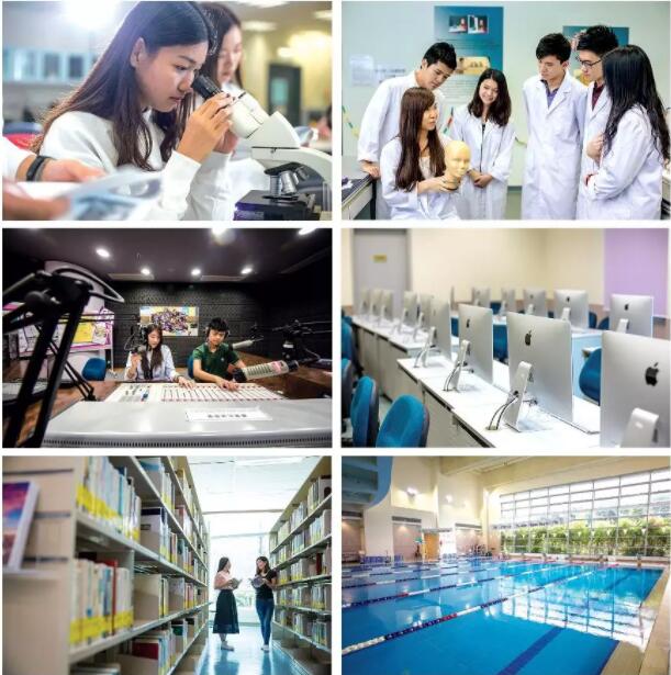 国际学院与浸会大学合办的各专修课程,有关学系同时提供专门的教学设施,包括生物及化学实验室丶电影及电视录影室丶室内健身室丶游泳池丶运动场丶美术及音乐室丶新闻与采访写作室等。