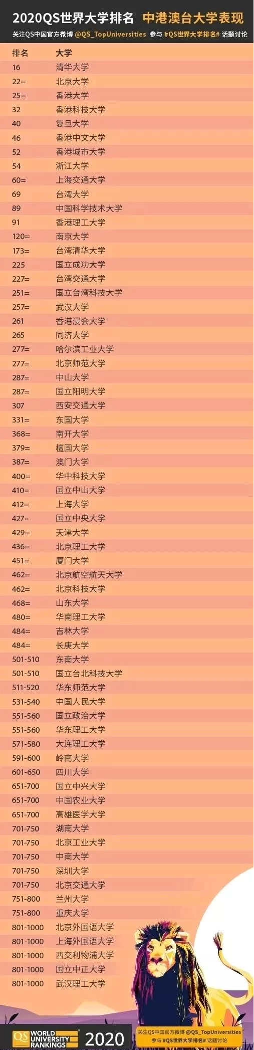 2020年QS世界大学排名揭晓,港澳台高校又一次刷新最好成绩!