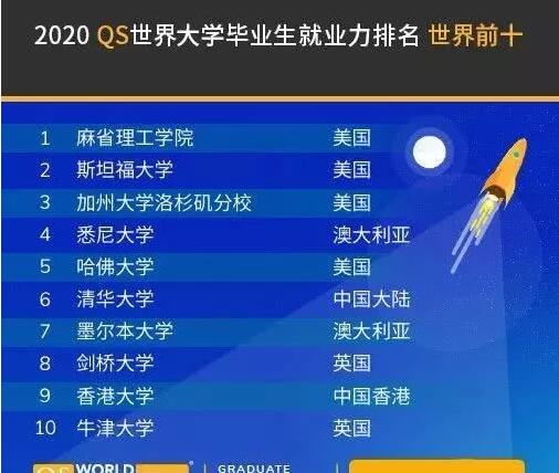 英国QS全球教育集团于近日公布了《QS全球大学毕业生就业竞争力排名2020》(QSGraduate Employability Rankings 2020)这个排名主要针对于各个高校在职业发展及就业前景方面的能力和成绩评估。