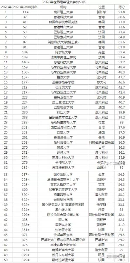 2020年QS世界年轻大学中,亚洲地区入围21所大学,世界排名前50的中国大学入围了6所,均为香港、台湾高校!