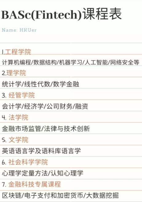 ■ 香港大学文理学士(金融科技)是一门跨越多个学科范畴的新兴课程,课程领域包括经济金融、计算机科学、数学、会计、法律及心理学等等。来,看Syllabus*: