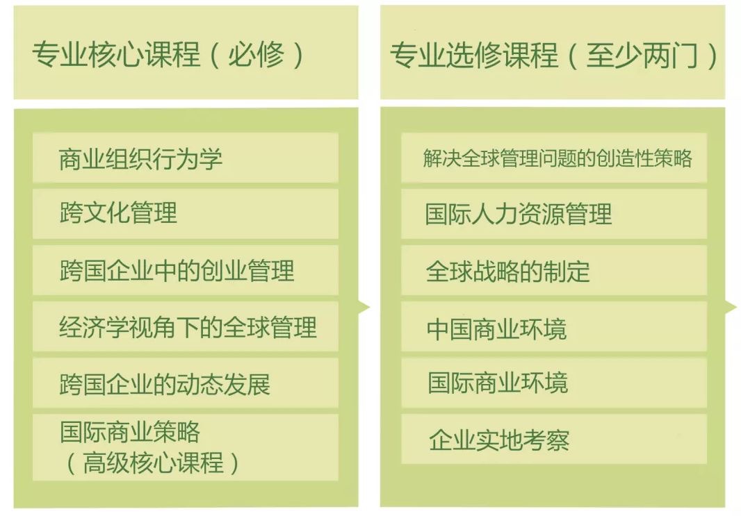 全球管理硕士项目的课程设置将确保学生在个人、组织和国家三个层面的知识储备,从而提高学生在全球化企业里的管理和领导能力。个人层面的课程着重于如何管理和激励团队内部的员工,组织层面的课程强调跨国企业的战略制定与管理,而国家层面的课程旨在培养学生对国家商业政策和大环境的理解。项目还将引导学生参与企业实地考察,以提高学生分析与沟通的技能,让学生在理解全球管理的同时,使自身事业更上一层楼。
