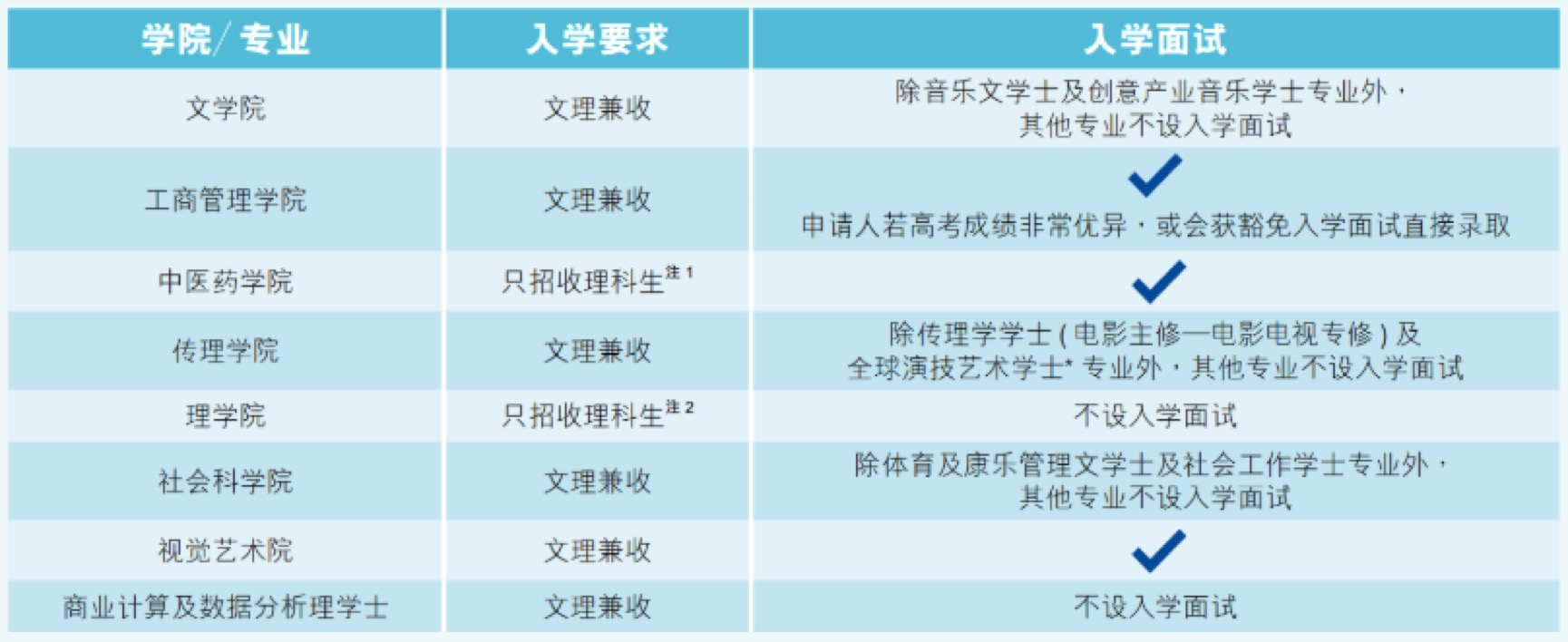 如高考省市属不分文理科,申请人报读以下学院时,须符合指定选考科目要求: