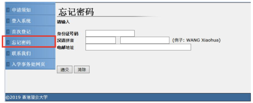 3. 申请人如忘记“用户名称”或“密码”,可点击“忘记密码”,填写有关资料后,便可重新登入 账户。