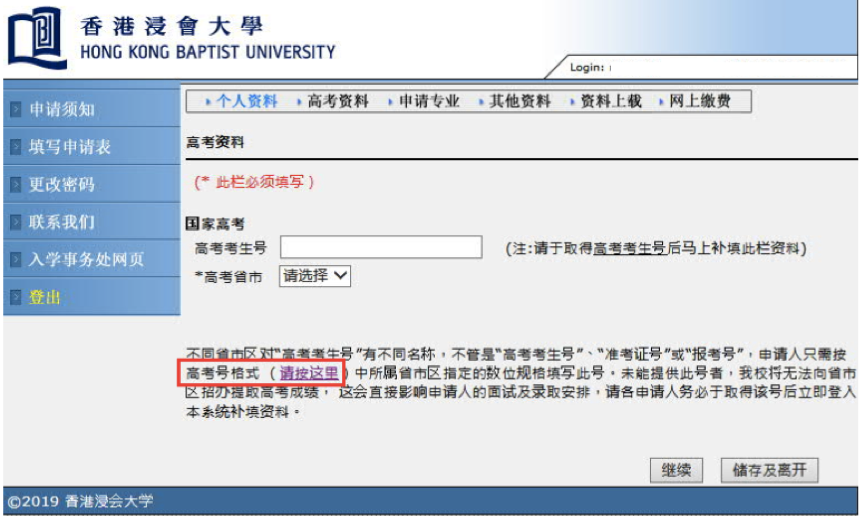 7. 填写申请表时若未取得高考考生号,可暂时留空有关栏位;但请务必于取得高考考生号后马上补 填此栏资料,填写前请点击高考号格式细阅相关要求。