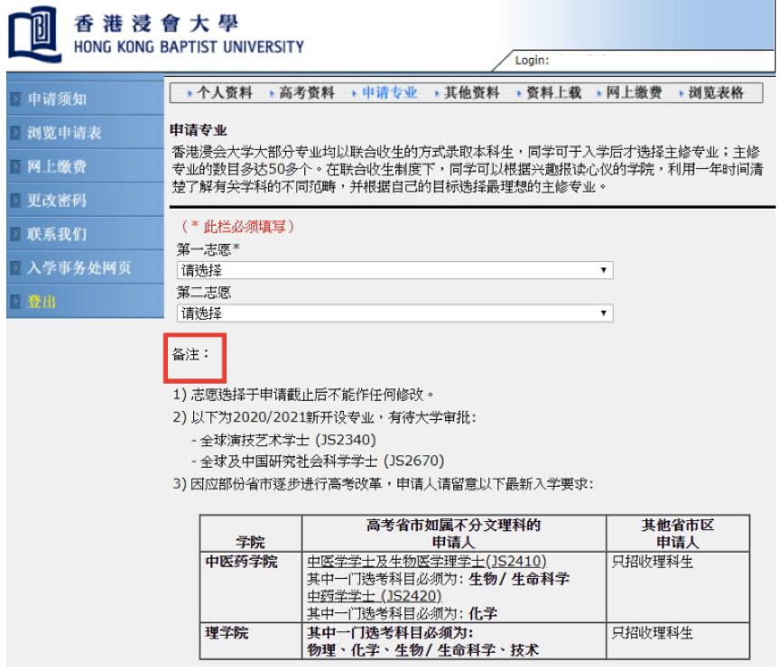 8. 选择专业时,请务必核实有关专业的编号及名称,并细阅下方所列个别专业的备注。