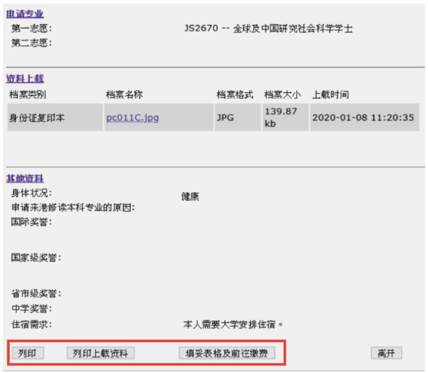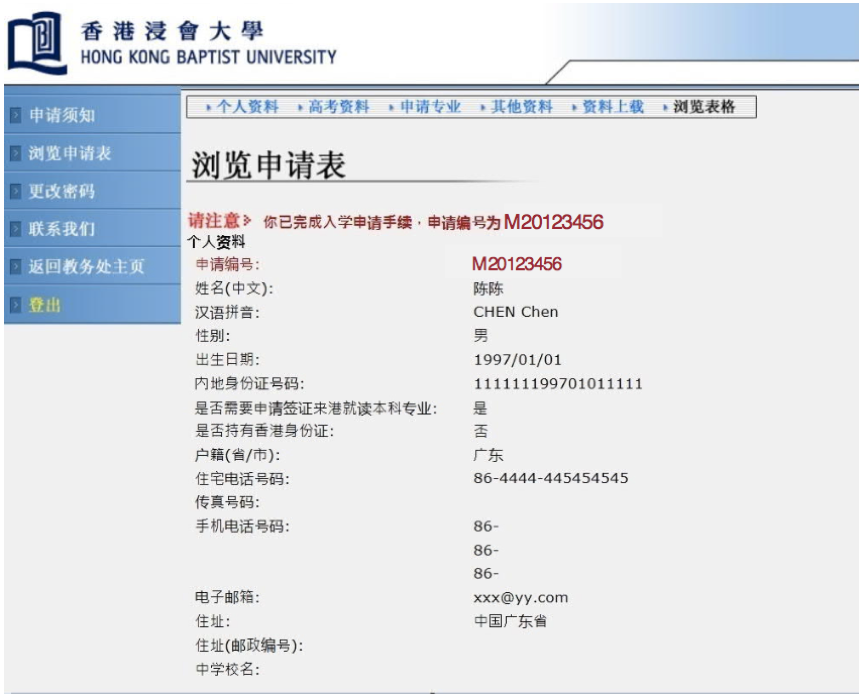 恭喜你!完成了香港浸会大学的内地本科生网上申请!