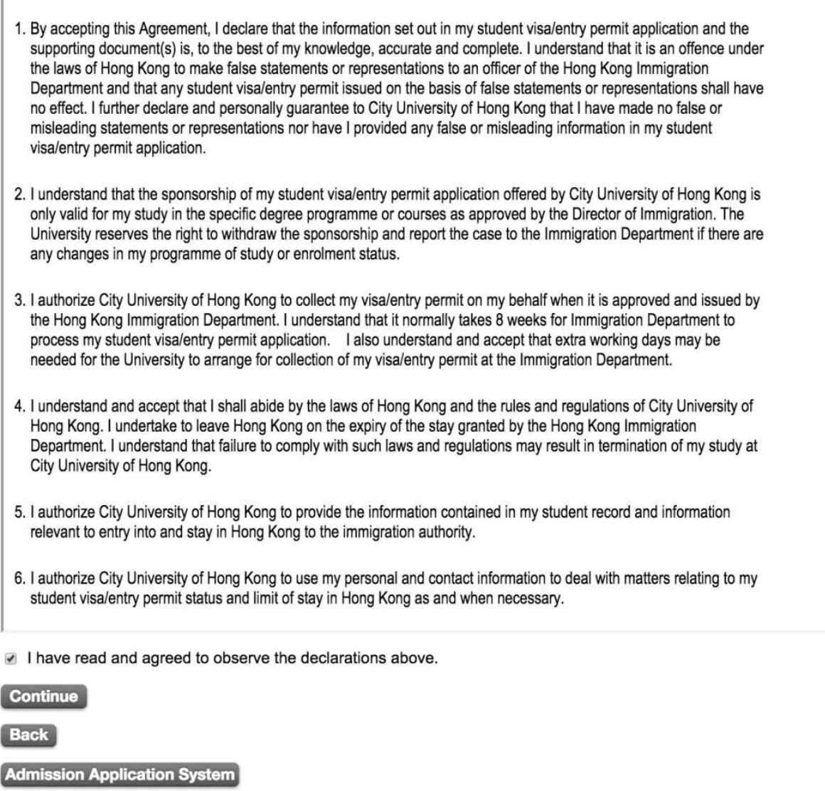 进入“E. Student's Declaration”,勾选条款后点击Continue。