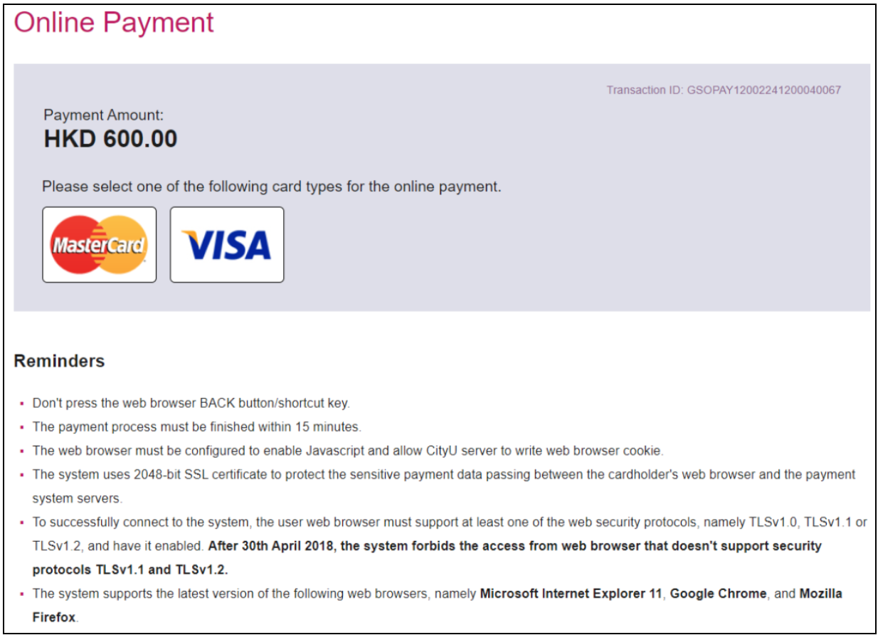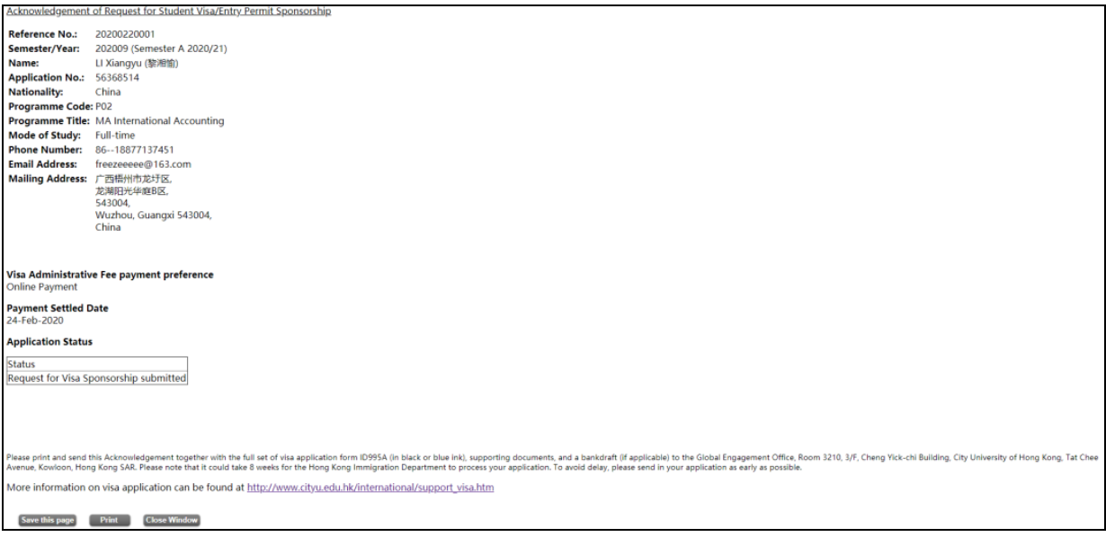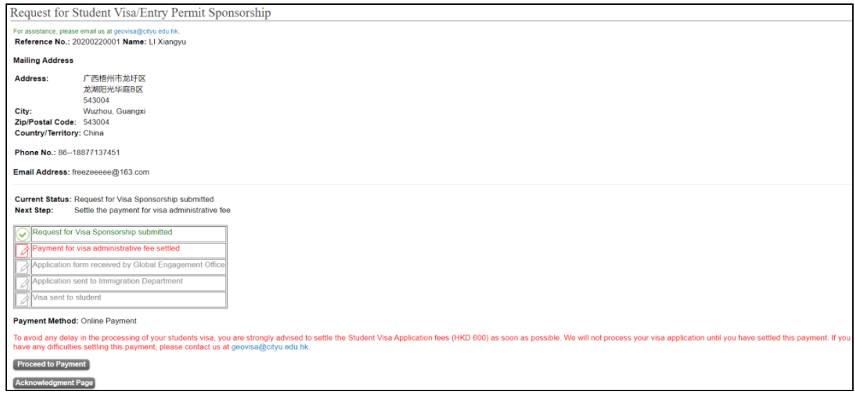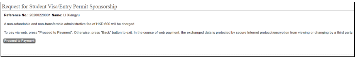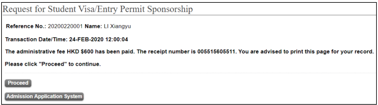 成功付款后,页面会显示“The administrative fee HKD $ 600 has been paid.”