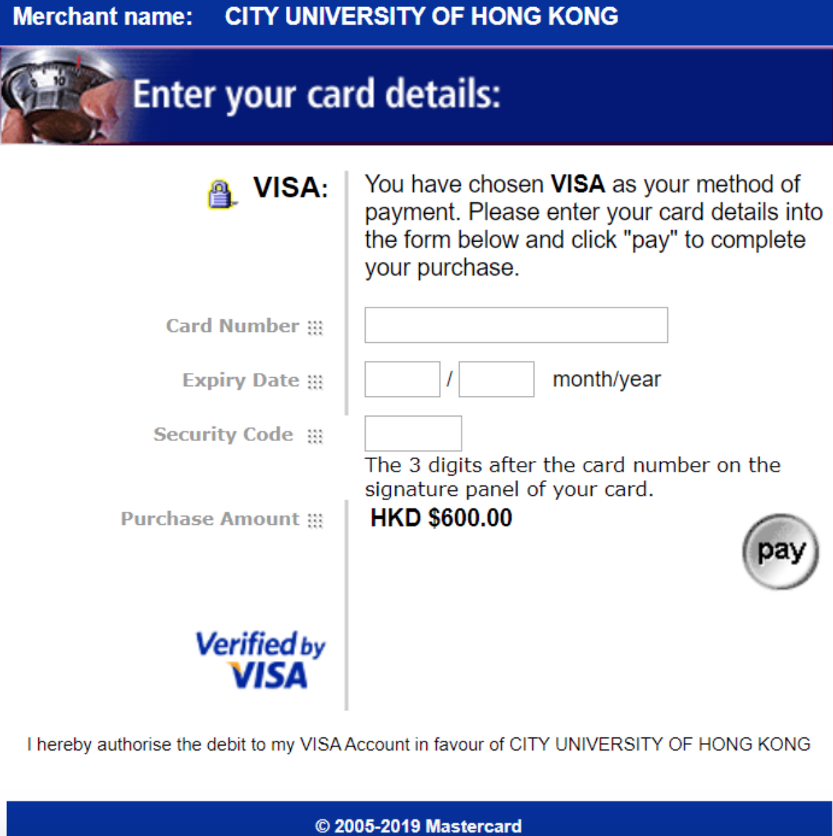 用VISA或者MASTER CARD 支付签证费。
