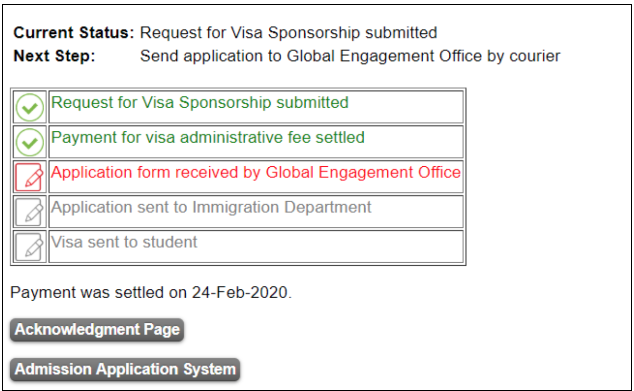 任务栏会更新到Application form received by Global Engagement Office
