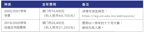 【澳门大学2020本科学费及奖学金设置】