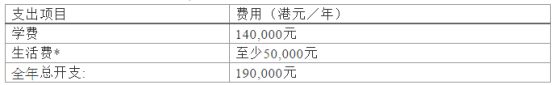 *: 生活费以每学年两学期计算, 总支出因应同学的生活方式而异