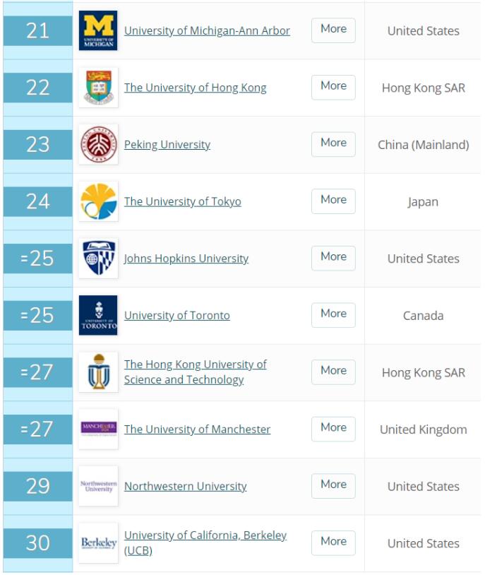 最新QS世界大学排名出炉|港大连升3位居世界第22位