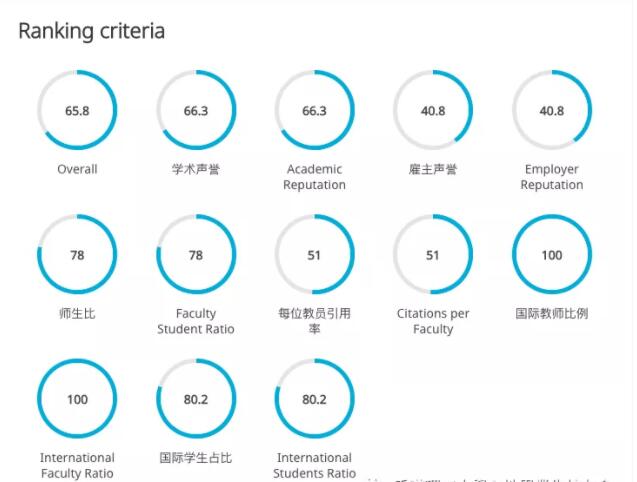 ●QS 2021年世界大学排名的指标共有6项,具体指标和和权重如下:学术声誉40%、雇主声誉10%、师生比例20%、单位教员论文引用数20%、国际教师比例5%、国际学生比率 5%。