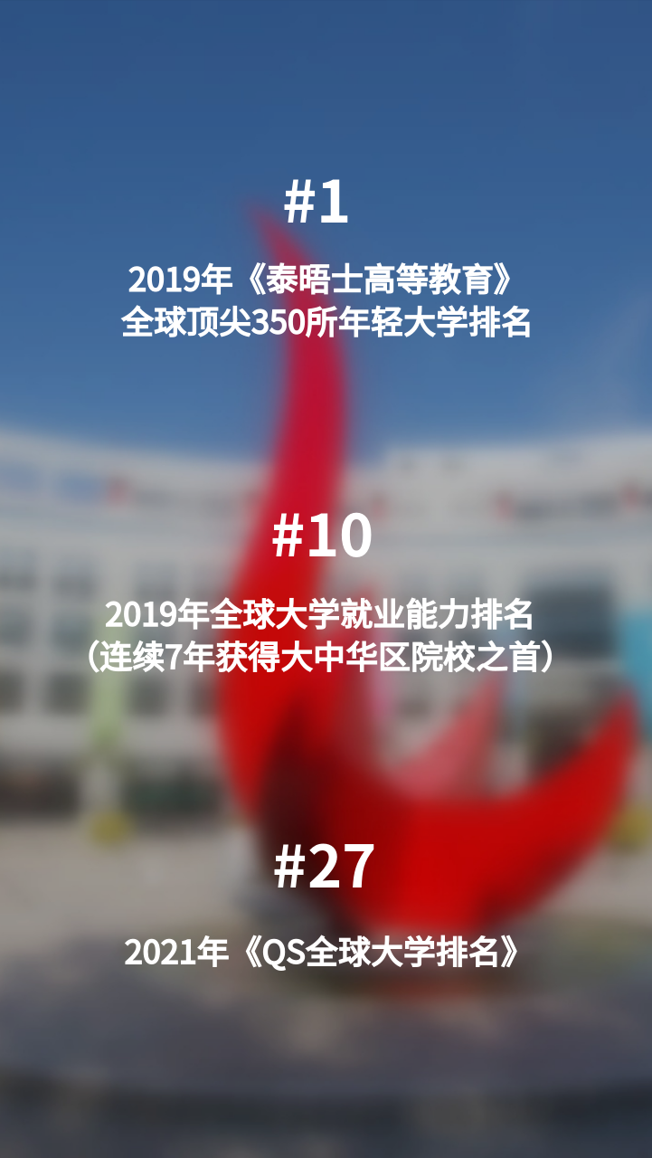 成立不足三十年,香港科技大学在世界的排名迅速攀升,于近日公布的2021年QS世界大学排名中,更荣居第27位,创历史新高。并于泰晤士报全球年轻大学排名中连续两年蝉联榜首。