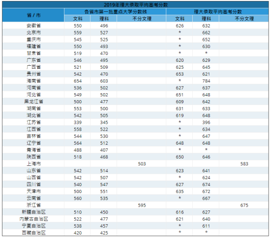 备注:理大在这些省份没有录取或只录取了一名申请人,故录取平均高考分数并不适用。