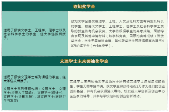 今年港大在原本的入学奖学金基础上,又新增了2个学科奖学金来嘉奖内地优秀学子,他们分别是致知奖学金和文理学士未来领袖奖学金。