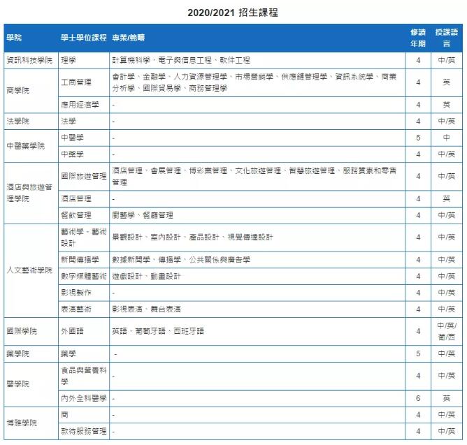 澳门院校2020年本科申请截至时间一览表,最晚到7月31日