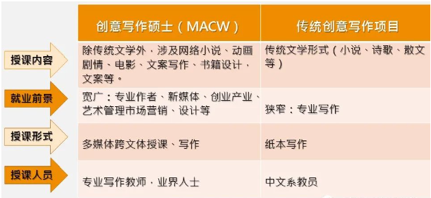 公开大学创意写作文学硕士是香港第一个以中文教授的创意写作硕士课程(MACW)。课程旨在培养学生的创意思维与专业写作能力,培训适应新媒体时代,并具创造力的写作人才。课程内容涵盖电影、戏剧、网络小说、动画剧情写作、饮食旅游文化、书籍设计与营销文案等多方面,由具经验之学者、作家与艺术界人士任教。课程将为同学今后踏入创意文化与写作行业做好理论与实践的准备。时下创意写作专业发展迅猛,2016年创意写作进入了教育部的专业目录,作为一个独立的二级学科,被视为重点发展的新兴学科。因应如今微信,抖音等新媒体的飞速成长,创意写作领域就业前景十分光明。