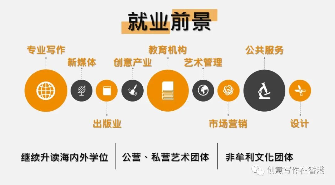 课程设计源自对创意写作的全新理解与诠释,课程内容大大拓宽技能培训和就业范围:毕业生可在未来的职业生涯中担任不同行业的职位,当中包括专业写作、新媒体、出版业、市场营销、艺术管理、文化创意产业及公共服务等等。学生于毕业后可投身于公营、私营艺术团体、非牟利文化团体或教育机构等行业。毕业生亦可选择继续修读海内外的深造课程。经过本课程的培养,学生将能在创意产业获得更好的发展前景。