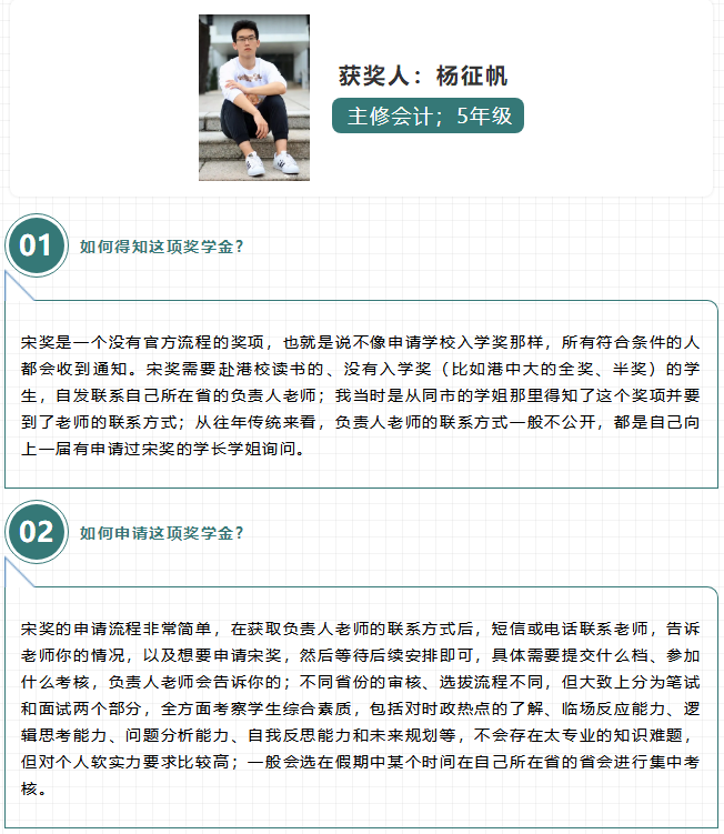 宋庆龄基金会致远助学金(每年对本科生发5万人民币,共4年)