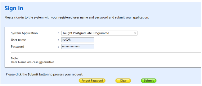 2.账户注册好后,点击网申系统页面上方的Sign in登陆账户,注意选择Taught postgraduate system才能登陆。