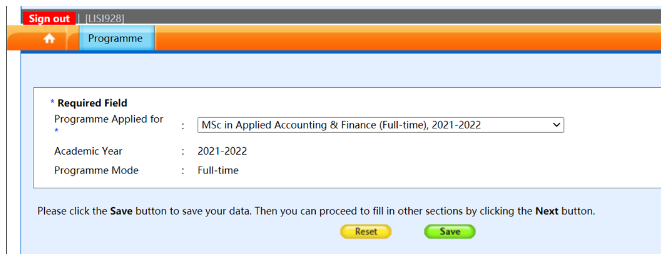 点击页面上方的programme→programme applied for开始选择专业。