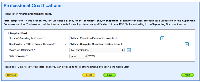 6. 填写职业资质Professional Qualifications